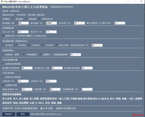 此为通达信预警+QMT下单版MALHJ股票综合专业助手价格: